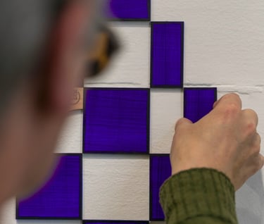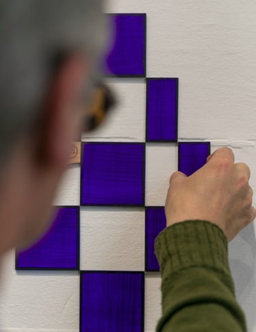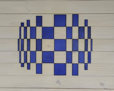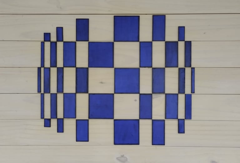 34 pieces of 5 mm plywood hand painted with acrylic art paint and varnished with Osmo Varnish.