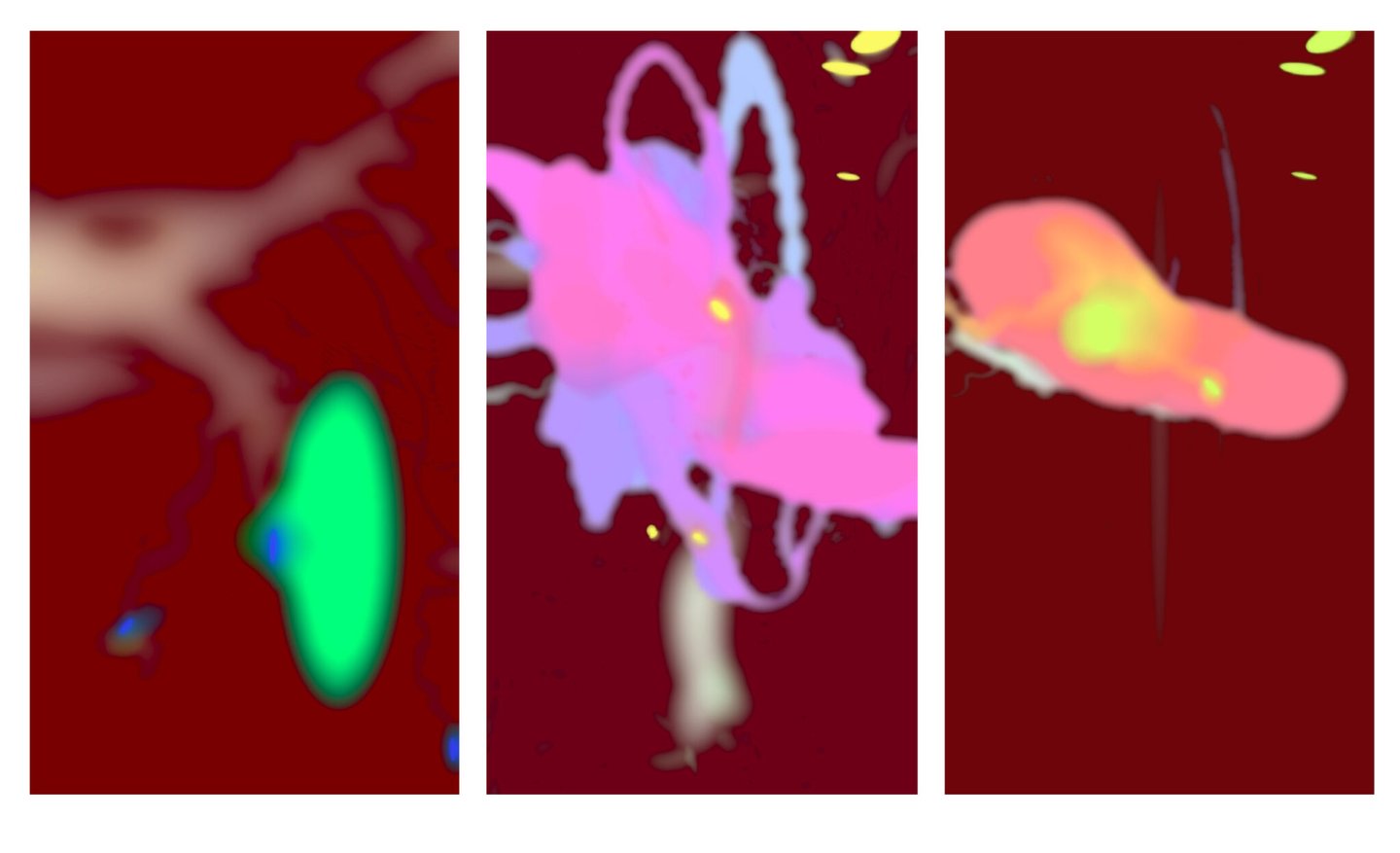 This triptych of digital paintings is born in a kind of performance with a computer vision software made by the artist himself, with which he registers the trace of his own body's movement. In this series of three works triptino_nomato (the unexpected) the artist encounters anomalous visual situations, in which the decoding of the works remains open to the imagination and interpretation of the viewer.
